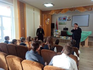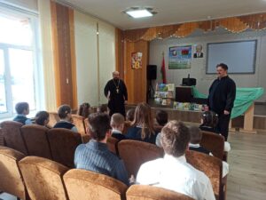 В школе — интернате существует добрая традиция — встречи с иереем Валерием Апановичем, Клириком прихода храма Покрова Пресвятой Богородицы. Накануне праздника Православной книги, в целях популяризации духовной литературы, традиционно отец Валерий посетил воспитанников школы- интерната, подарил книги, собранные прихожанами. Рассказал о духовном богатстве, о мудрости, о святости заключенном в книгах.