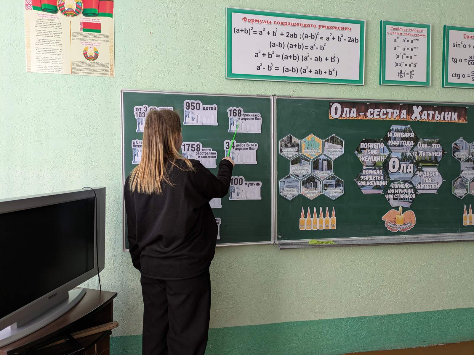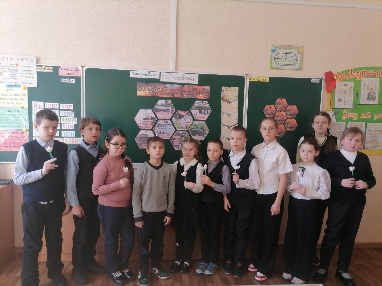 Сегодня в школе-интернате прошел Единый урок памяти «Ола — сестра Хатыни», посвященный трагедии в Оле — важному событию в истории нашей страны, которое оставило глубокий след в сердцах людей. На уроке говорили об историческом прошлом белорусского народа, о геноциде в годы Великой Отечественной войны и о трагедии в деревне Ола.