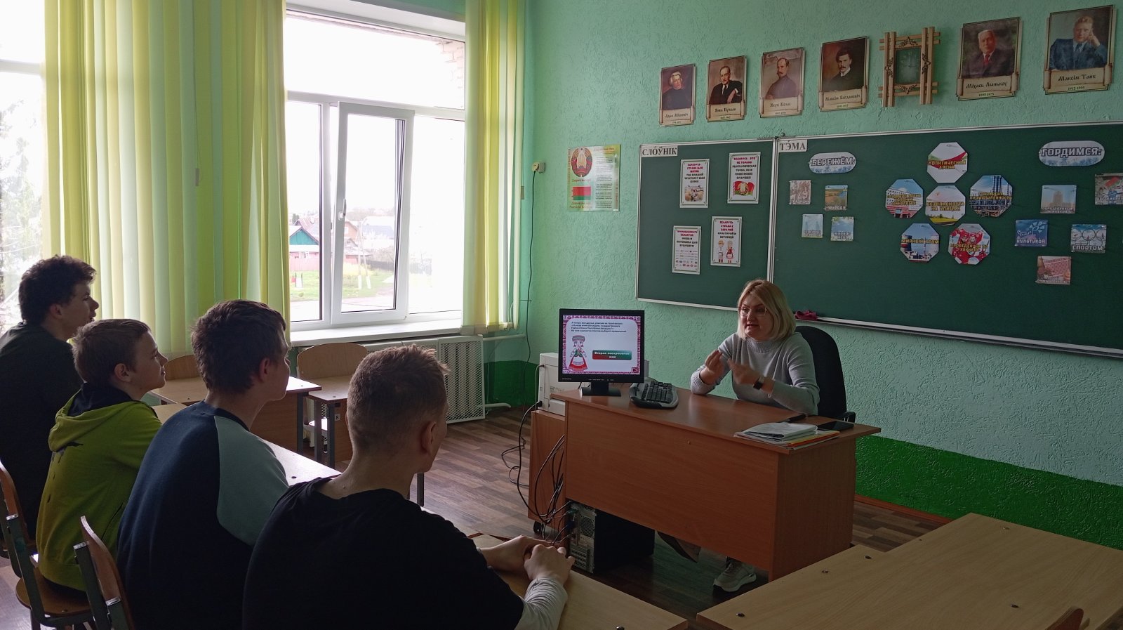 В рамках «Шестого школьного дня» классные руководители Н.А.Сулейманова и О.В.Исакова провели для учащихся 7-9 классов игру-викторину «100 вопросов о Беларуси», целью которой было развитие познавательной активности, формирование интереса к изучению историко-культурного наследия Беларуси.