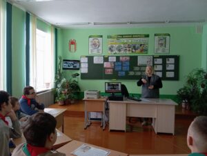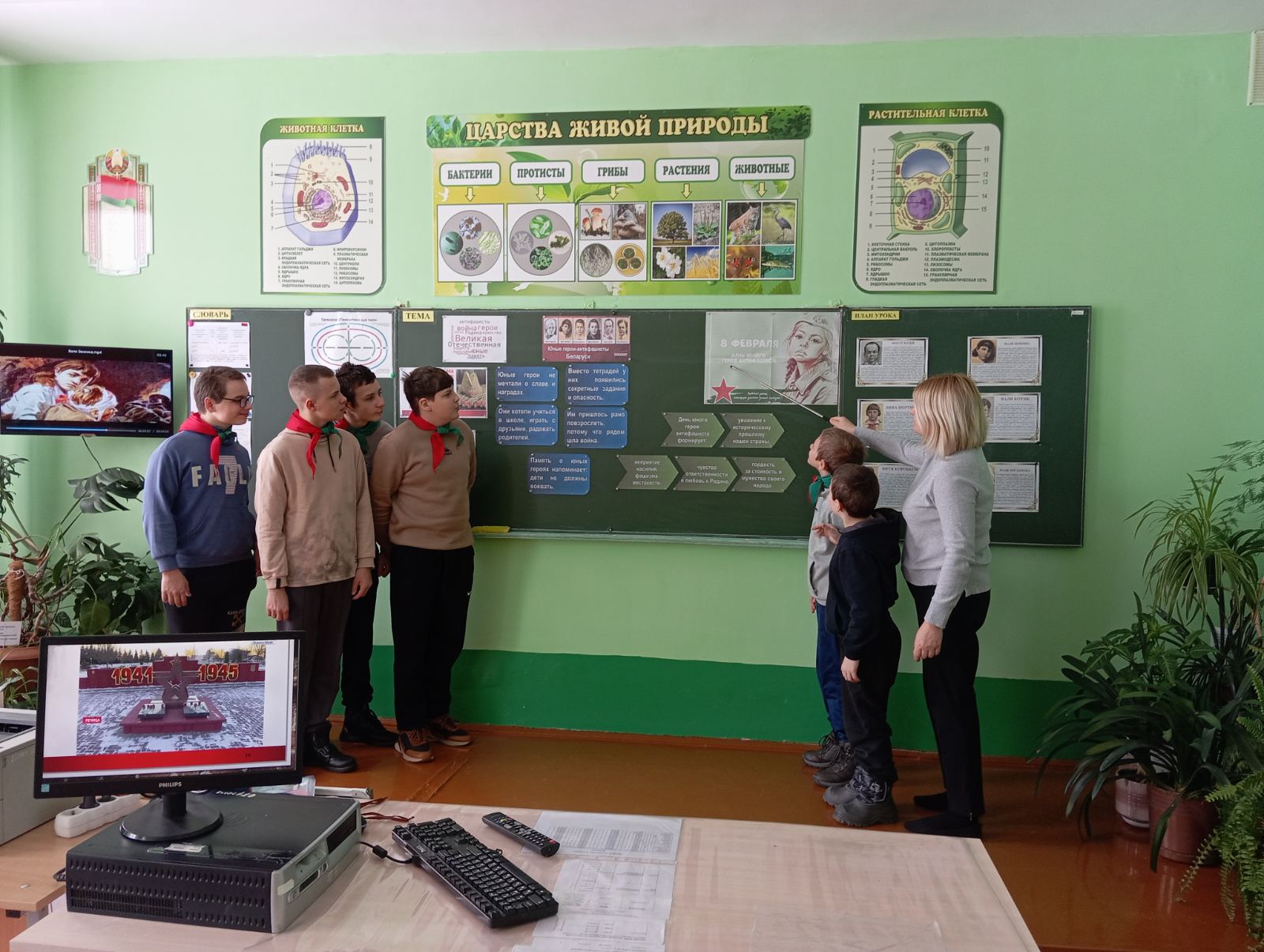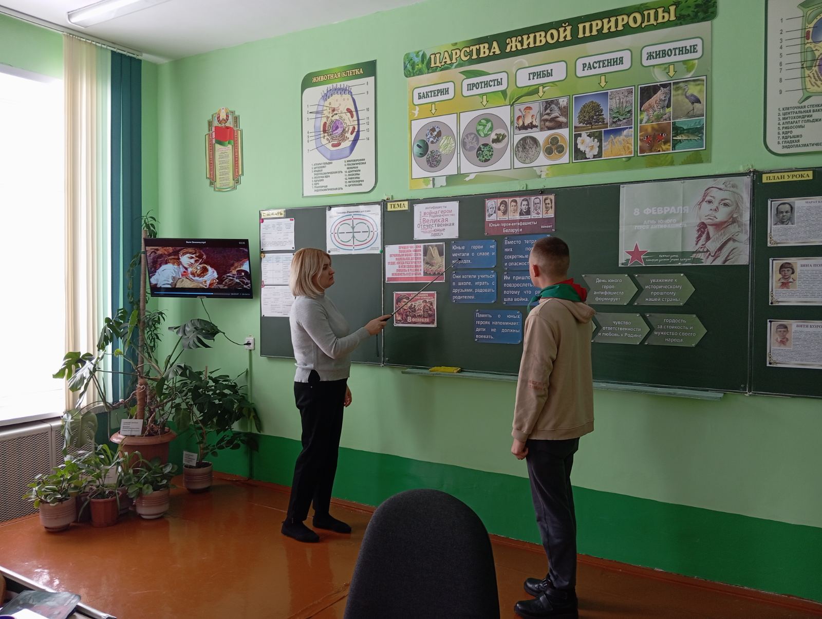 В рамках шестого школьного дня (день гражданского и патриотического, духовно-нравственного воспитания) классные руководители Исакова О.В. и Сулейманова Н.А. провели инфо-дайджест «Контуры времени», приуроченный ко Дню юного героя-антифашиста.