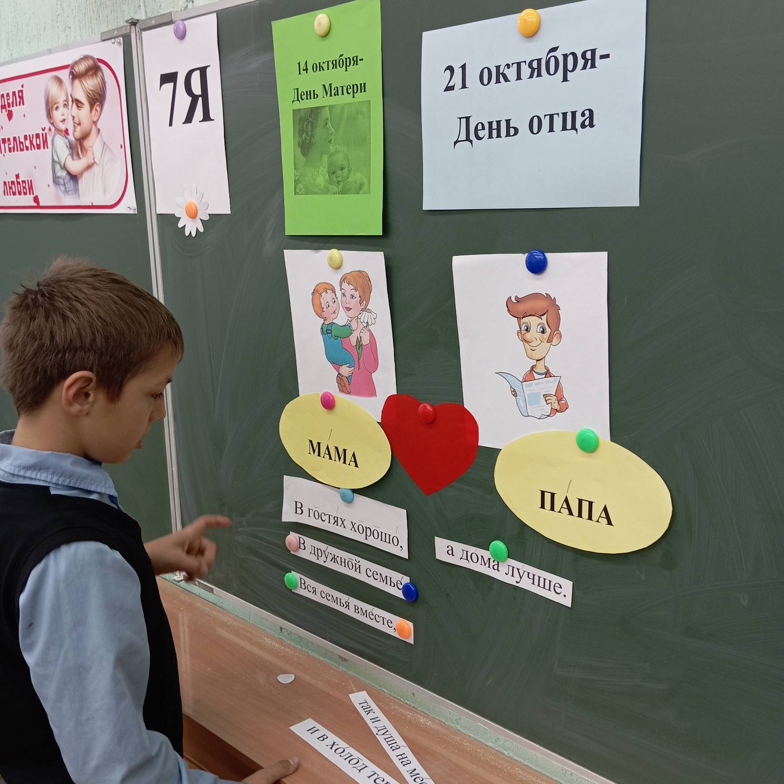 В рамках недели родительской любви с целью укрепления семейных ценностей 20 октября было проведено мероприятие «Мама и папа — самые близкие люди». Дети с удовольствием выполняли задания, отгадывали загадки, составляли пословицы о семье, а также делали открытки для своих любимых родителей.