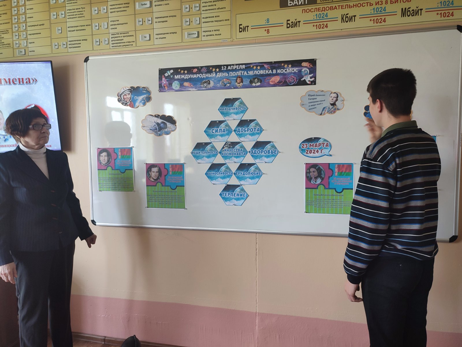 12 апреля отмечается Международный день полета человека в космос.  В   школе-интернате прошла виртуальная экскурсия «Космические имена» по страницам космической истории. Ребята узнали о первом спутнике и полете Юрия Гагарина, о достижениях страны в области космических исследований и современных космических станциях. Учащиеся   с гордостью поговорили о том, что Беларусь можно называть космической державой, ведь четверо белорусов были среди тех, кто побывал в космическом пространстве, и среди них – женщина-космонавт Марина Василевская. Ребята в очередной раз убедились, что нам, белорусам, есть чем гордиться.