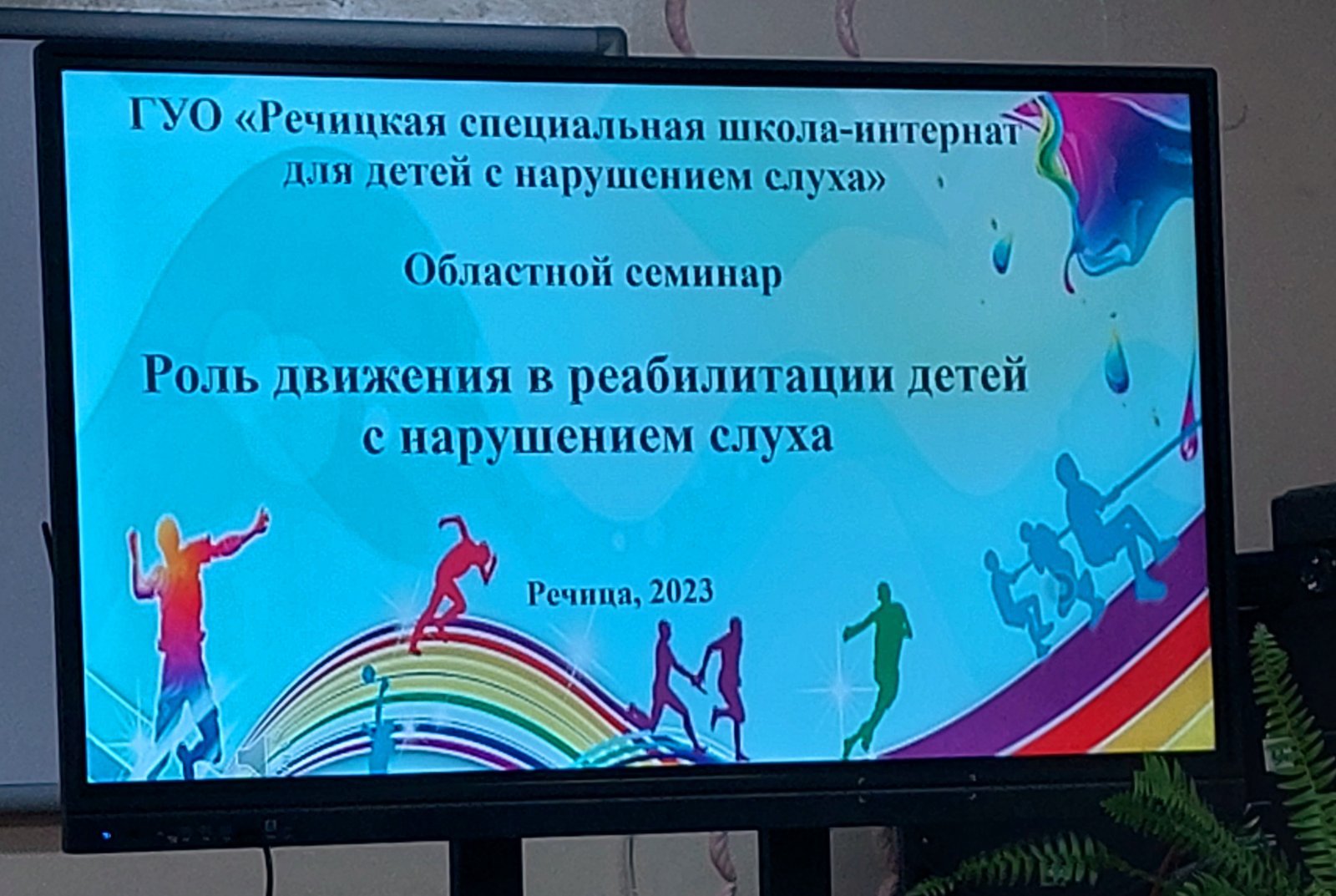 26.10.2023 года на базе государственного учреждения образования «Речицкая специальная школа -интернат для детей с нарушением слуха» состоялся областной семинар по теме «Роль движения в реабилитации детей с нарушением слуха» для специалистов(методистов), курирующих вопросы специального образования, физической культуры и здоровья. Цели семинара: ознакомить участников семинара с реализацией прав детей с нарушением слуха в Гомельской области, транслировать опыт работы по реабилитации детей с нарушением слуха на уроках физической культуры и здоровья, ознакомление с методикой и организацией занятий физической культурой с детьми дошкольного возраста с нарушением слуха, ознакомить с работой «Гомельского областного центра олимпийского резерва по паралимпийских и дефлимпийским видам спорта» с обучающимися с нарушением слуха. Приняли участие в работе семинара 53 специалиста. Перед участниками семинара выступили Корнилов Ю.Г., директор государственного учреждения «Гомельский областной центр физического воспитания и спорта учащихся и студентов», директор государственного учреждения образования «Гомельский областной центр коррекционно-развивающего обучения и реабилитации» Усова Т.М., директор учреждения «Гомельский областной центр олимпийского резерва по паралимпийским и дефлимпийским видам спорта» Кожемяко Д.Д., поделились опытом работы инструктор- методист Атрощенко А В и тренер- преподаватель по спорту Кацуро В.Д.