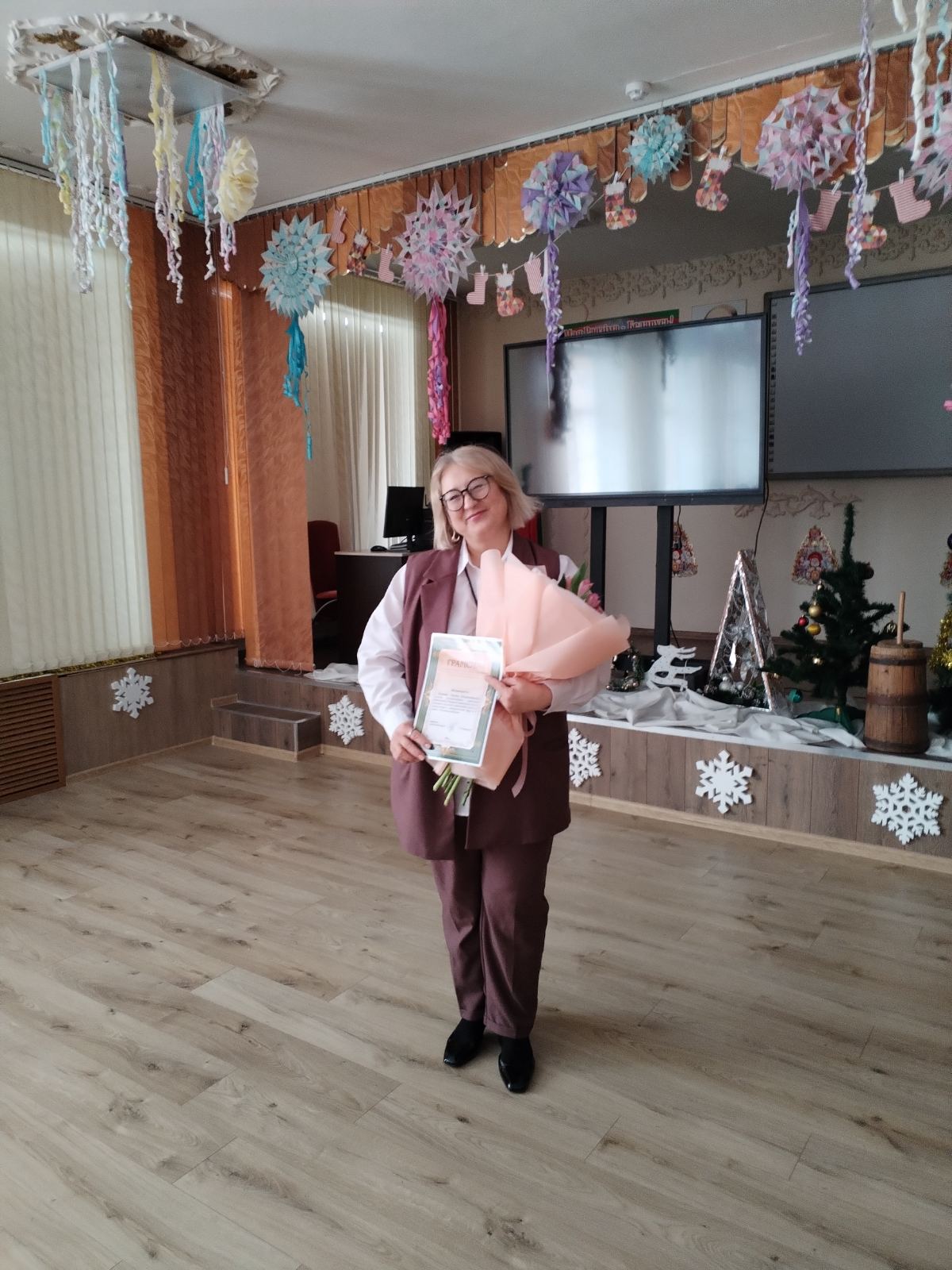 Сегодня поздравления с юбилеем принимала учитель географии Исакова Оксана Владимировна.