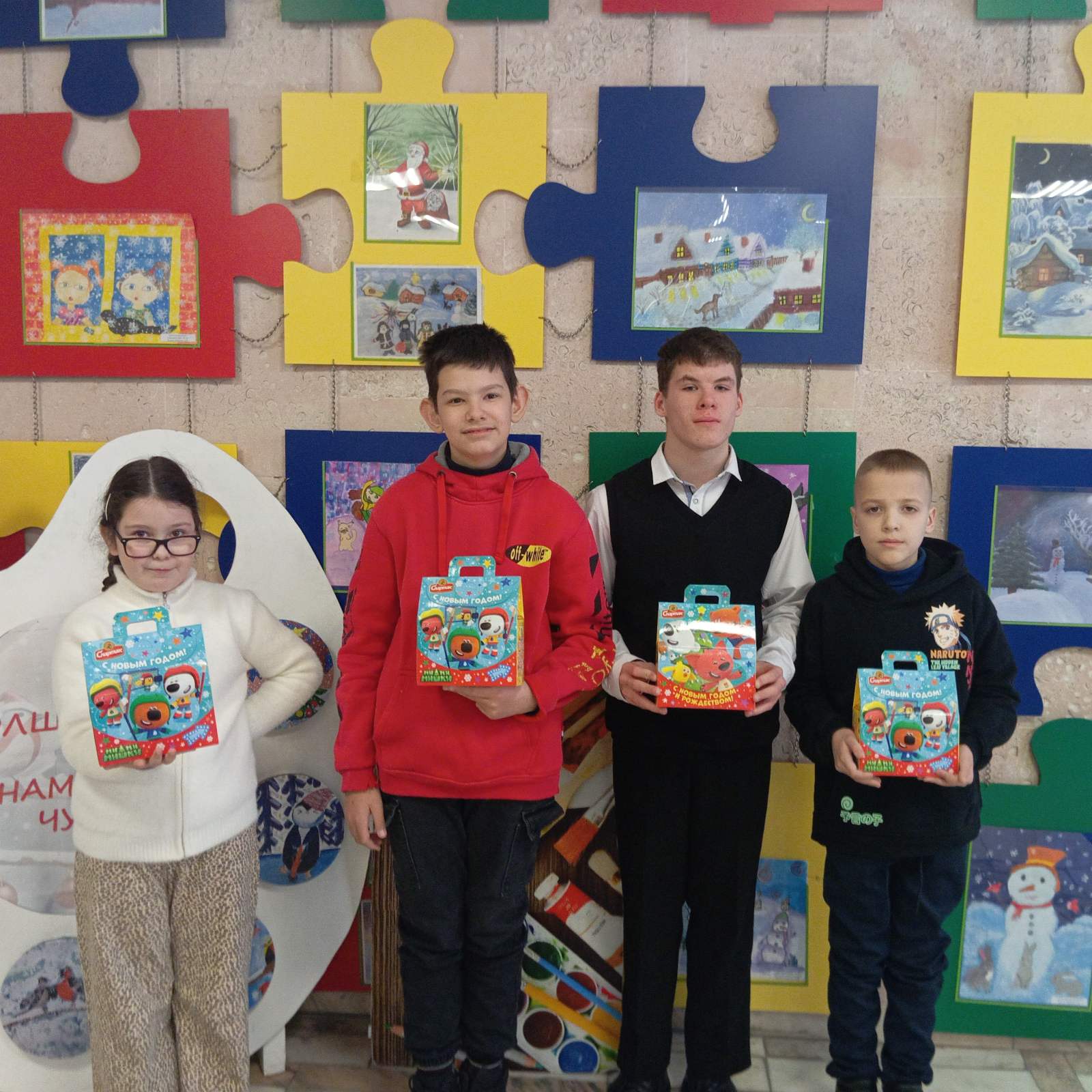 Сегодня ребята посетили новогоднее представление «Новогодняя лаборатория Деда Мороза» в Гомельском дворце творчества детей и молодежи. Ребят встречали любимые герои, а танцевальные флешмоб, веселые конкурсы и хороводы подарили заряд радости и веселья. Во время представления дети погрузились в атмосферу настоящего зимнего чуда.