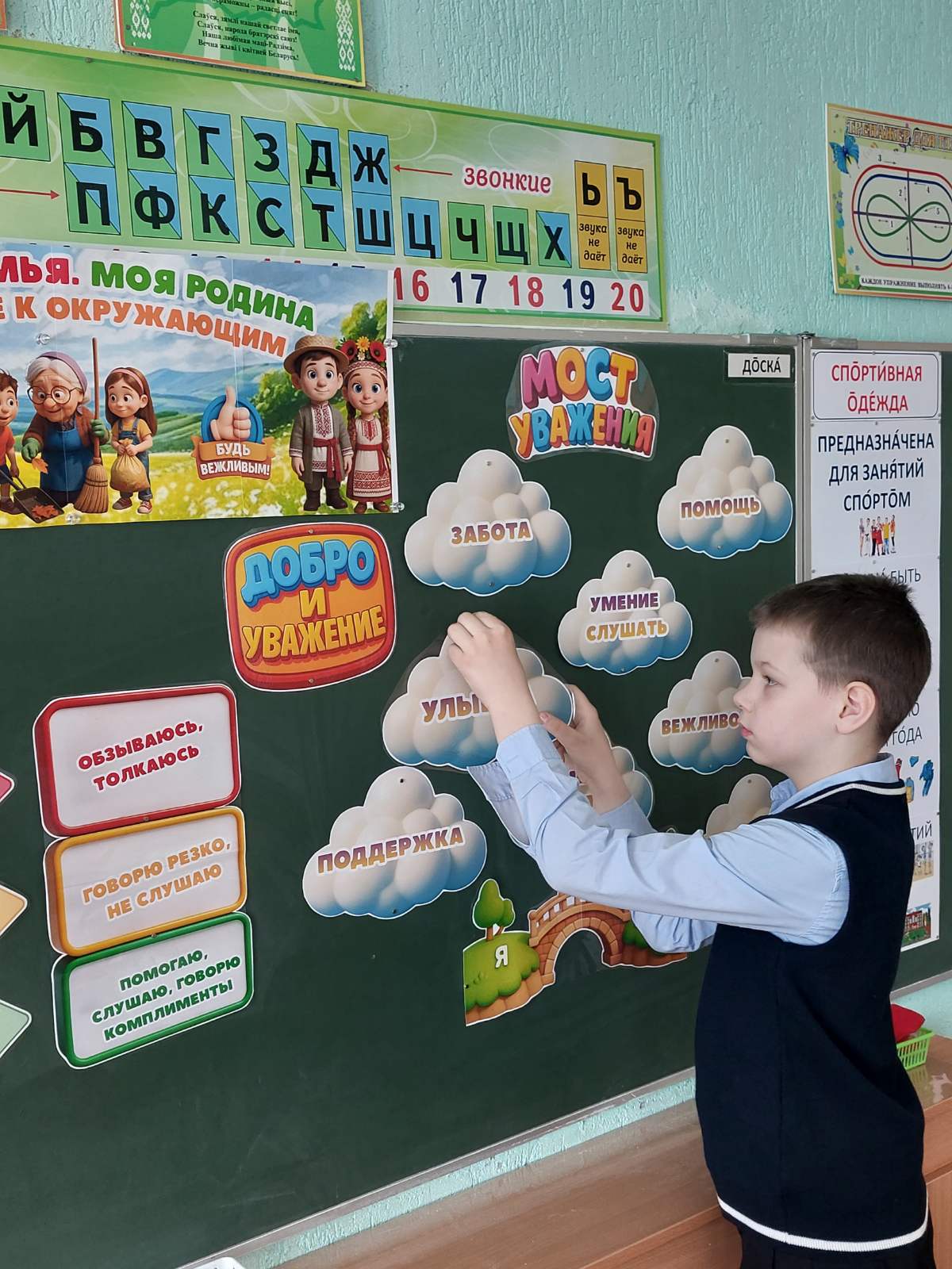 12 марта в рамках классного часа в 3 классе, прошло тематическое занятие по программе «Я. Моя семья. Моя Родина» — «Уважение к окружающим». Цель занятия — формирование у учащихся нравственных качеств: уважительного отношения к окружающим; понимания значения таких качеств как доброта, вежливость, отзывчивость.