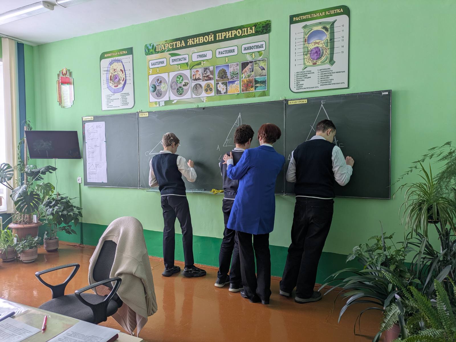 В 8 классе прошел открытый урок математики по теме «Сумма углов треугольника». Выбранная учителем Андрачик С.С. структура урока позволила создать в классе рабочую обстановку и рационально распределить время на каждом этапе. Важным моментом на уроке было соблюдение здоровьесбережения: смена видов деятельности, упражнения для снятия нагрузки. По завершении урока проведена рефлексия, урок завершился на положительном эмоциональном уровне.