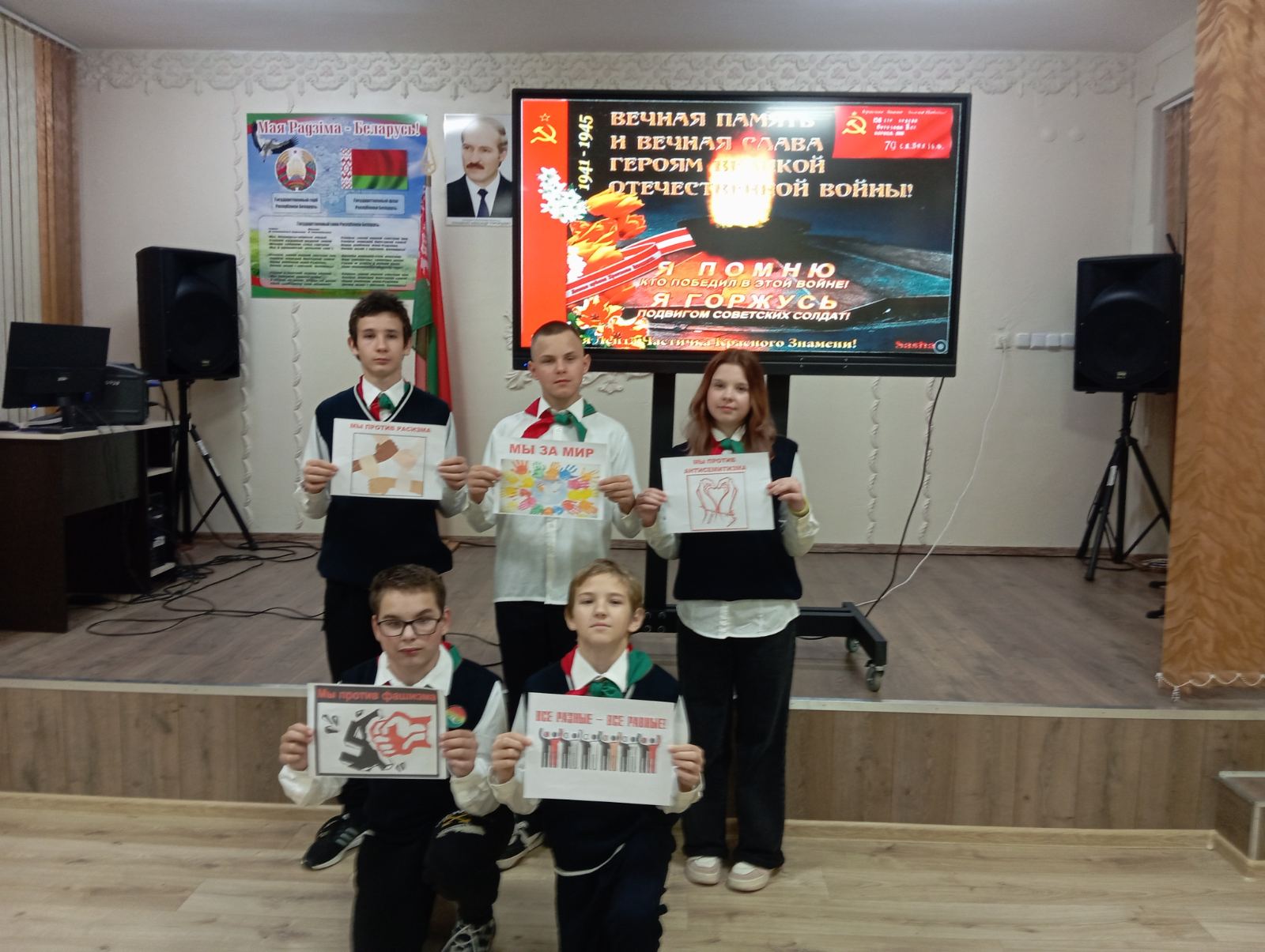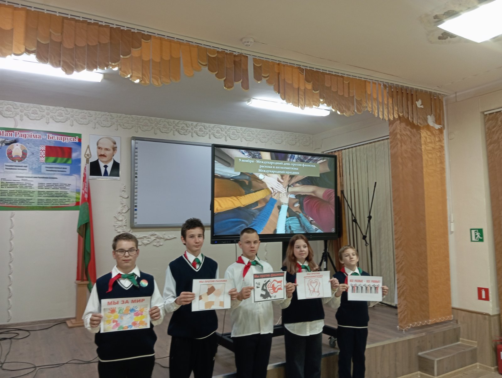 В ГУО «Речицкая специальная школа-интернат для детей с нарушением слуха» прошли мероприятия, посвящённые Международному дню против фашизма, расизма и антисемитизма. Ребята говорили о происхождении этого дня, осветили события, повлекшие необходимость такого дня. В интерактивной беседе с учащимися были сделаны выводы о недопустимости повторения тех страшных событий. Активное участие в подготовке и проведении мероприятий приняли наши пионеры дружины им. Петра Ульянова.