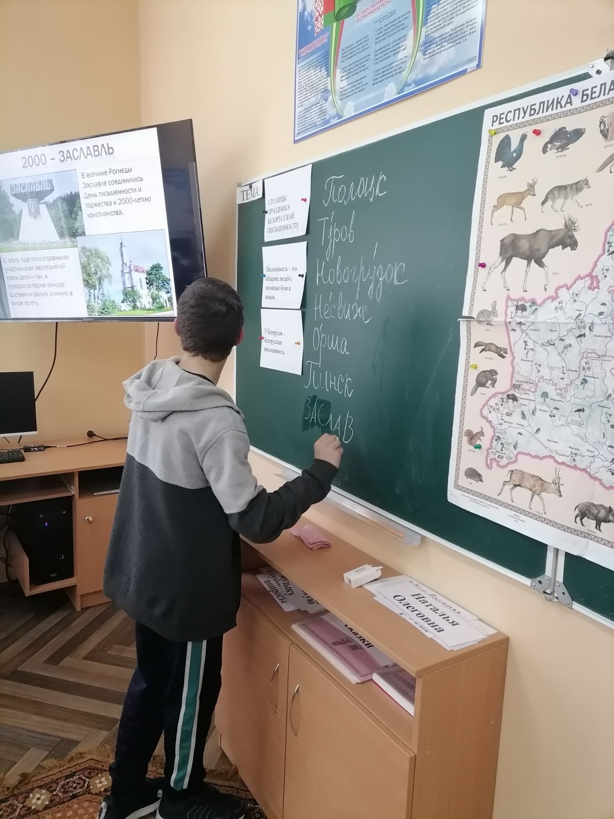 20 февраля в 8 и 10 «Б» классах прошло внеклассное мероприятие «Столицы белорусской письменности». Ребята вместе с воспитателем Л.Б. Кузьменок совершили виртуальную экскурсию по столицам Дня белорусской письменности, ознакомились с памятными местами белорусских городов, вспомнили имена знаменитых людей Беларуси.